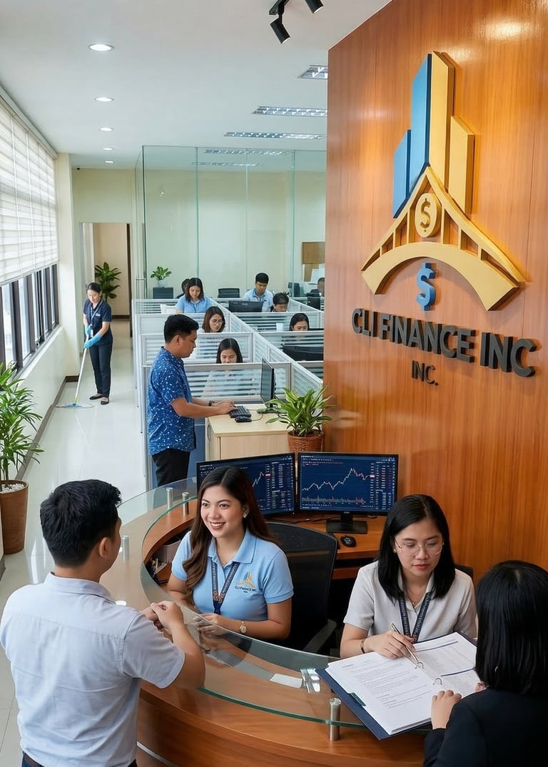 CLI FINANCE INCORPORATION. is regulated by Securities and Exchange Commission (SEC) with SEC Number A200003851 and Certificate of Authority No. 292 issued April 12, 2000. Corporated with registered office at Pacific Star Bldg, Makati Avenue, 1226 Sen. Gil J. Puyat Ave, Makati, Metro Manila, Philippines..